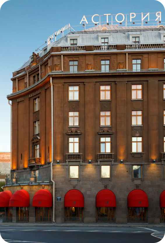 Роскошь, историческое наследие и культурные традиции в одном месте. Непревзойденное расположение в центре города. Вид на Исаакиевский собор. Узнаваемый исторический фасад, роскошные интерьеры, камерная атмосфера. История гостиниц «Астория» и «Англетер» - это история Санкт-Петербурга.